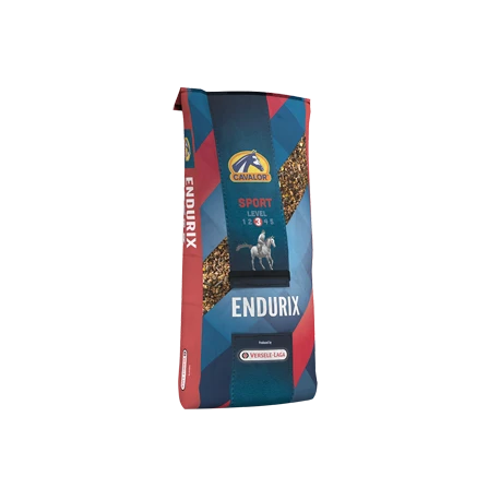 Cavalor® Endurix est une alimentation pour chevaux de compétition qui doivent fournir des efforts de longue durée (disciplines telles que le complet, l’attelage, l’endurance, etc…). Pour fournir un effort de longue haleine, ils ne puisent pas seulement leur énergie dans les céréales mais ont également besoin de sources d’énergie de plus longue tenue comme les graisses végétales ou les acides gras volatils (constitués de fibres brutes dans le gros intestin) etc.