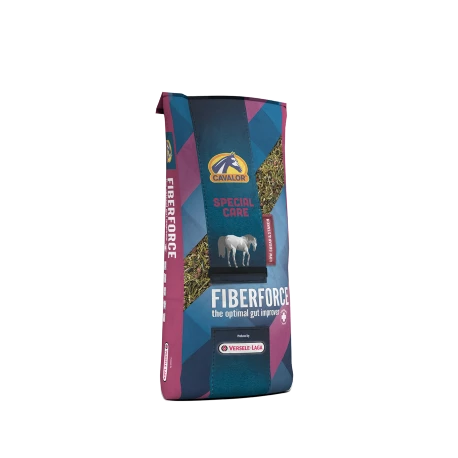Cavalor® FiberForce est une alimentation riche en fibres et à faible teneur en sucre et amidon qui est particulièrement adaptée aux chevaux atteints d’ulcères de l’estomac, de maladies gastro-intestinales, d’insulinorésistance (IR), de fourbure, de la maladie de Cushing, de rhabdomyolyse (tying-up), de colique et/ou de troubles musculaires.