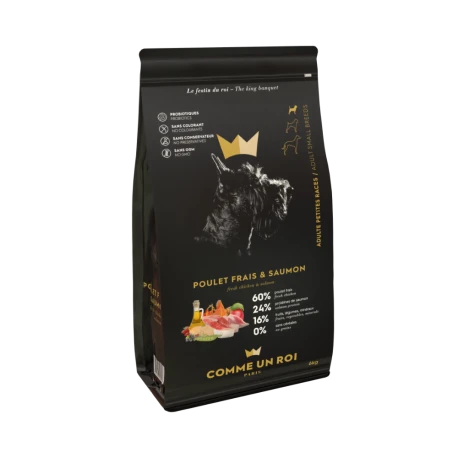 Croquettes Sans Céréales Poulet Frais et Saumon Pour Chien Adulte Petite Taille