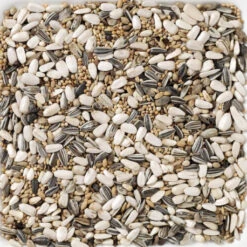 Tournesols noirs, tournesols striés, cardi, sarrasin, sorgho blanc, extrudés, riz paddy, blé, noix de cèdre, avoine pelée, grit, baies de genévrier, orge, raisins, chènevis, fruits d’églantier, morceaux de carottes, arachides pelées, graines de citrouille, chardon marie, noix du Brésil, papaye, ananas, rondelles de bananes, noix, baies de sorbier, piments
